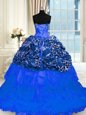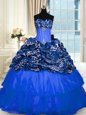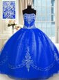 Glamorous Royal Blue Strapless Lace Up Beading and Embroidery 15 Quinceanera Dress Sleeveless
