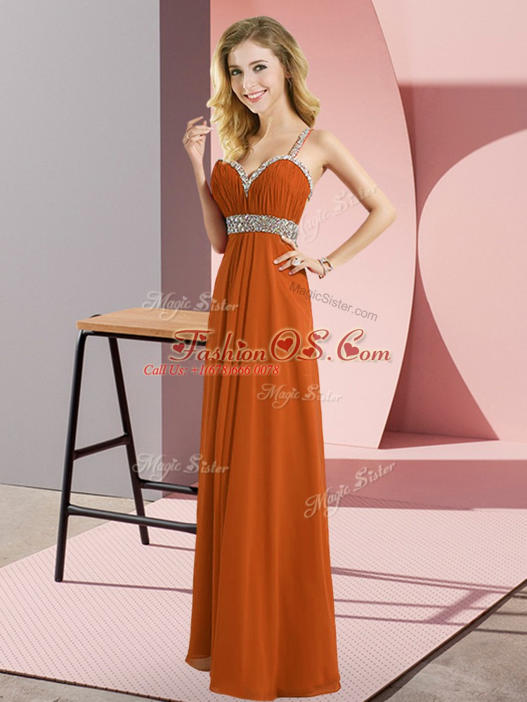 Glamorous Rust Red Sleeveless Chiffon Criss Cross Casual Dresses for Prom and Party