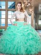 Glamorous Scoop Beading and Ruffles Sweet 16 Dress Apple Green Backless Cap Sleeves Floor Length