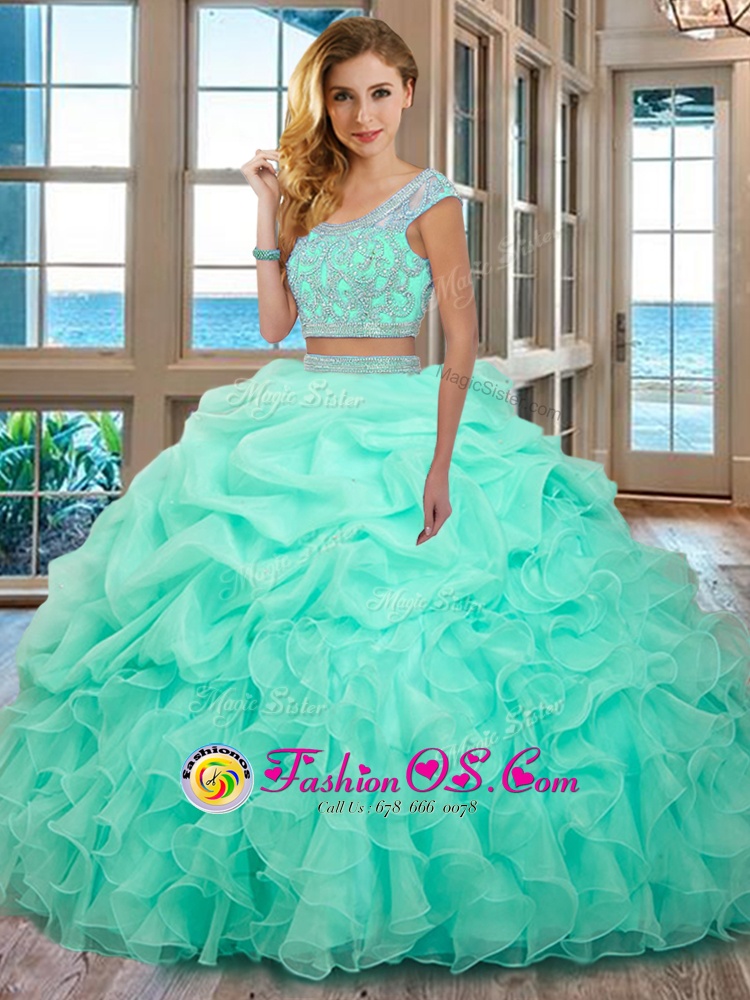 Home >  Quinceanera Dresses >  Cheap Quinceanera Dresses > Glamorous Scoop Beading and Ruffles Sweet 16 Dress Apple Green Backless Cap Sleeves Floor Length