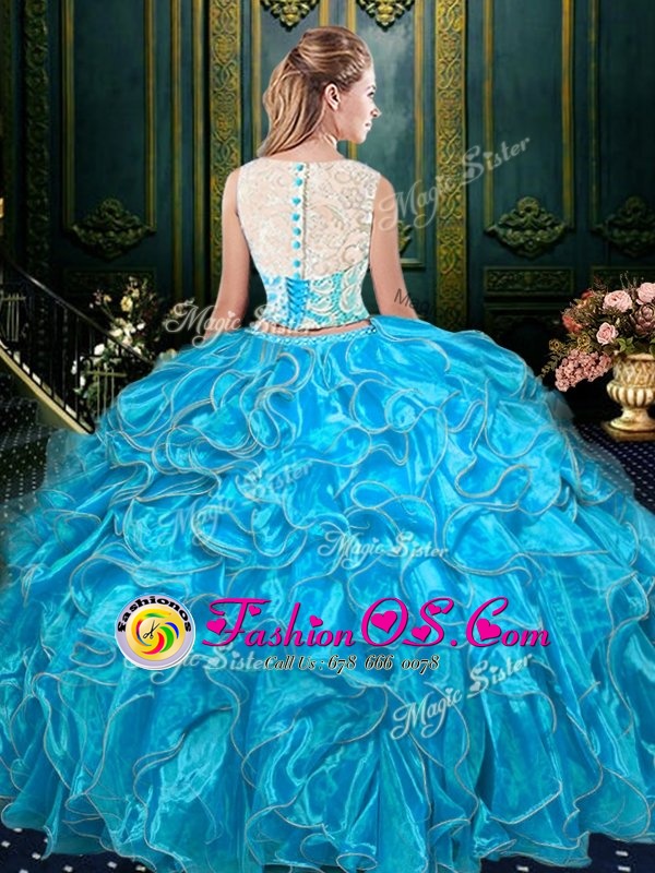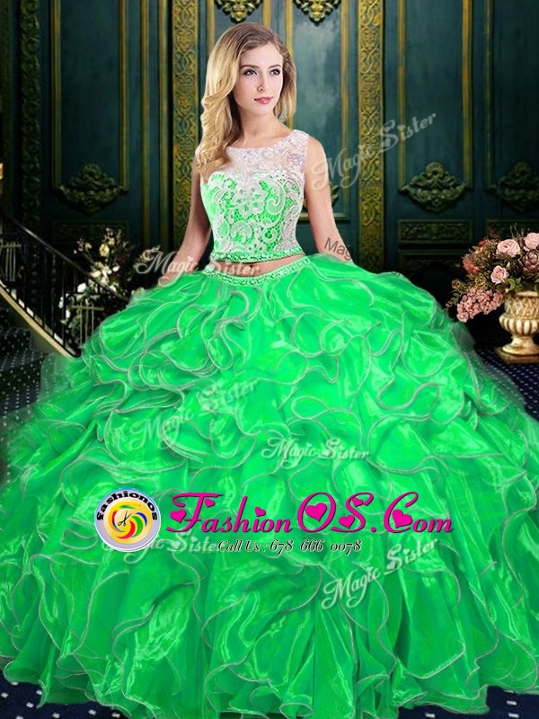 Glamorous Scoop Sleeveless Zipper Floor Length Lace and Ruffles Sweet 16 Dresses