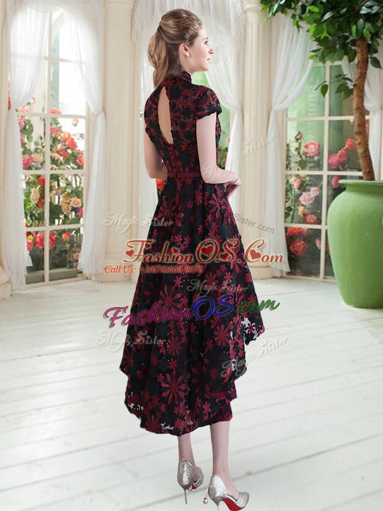 Glamorous Short Sleeves Appliques Zipper Prom Evening Gown