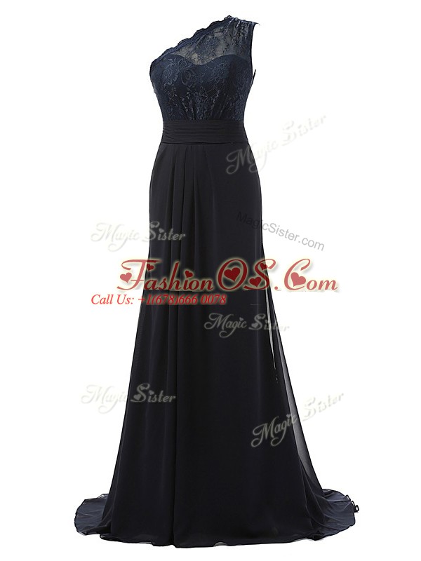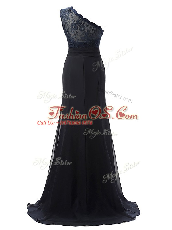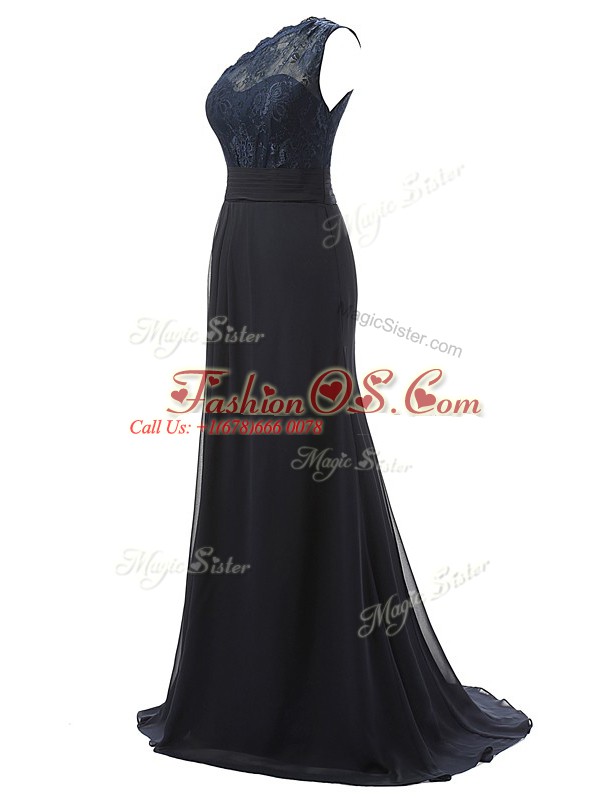 Glamorous Sleeveless Brush Train Lace Side Zipper Dama Dress for Quinceanera
