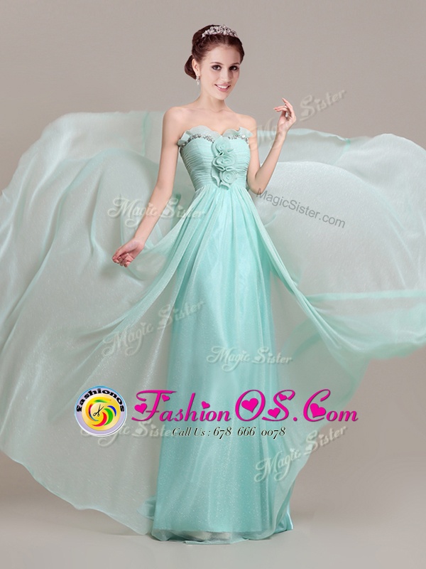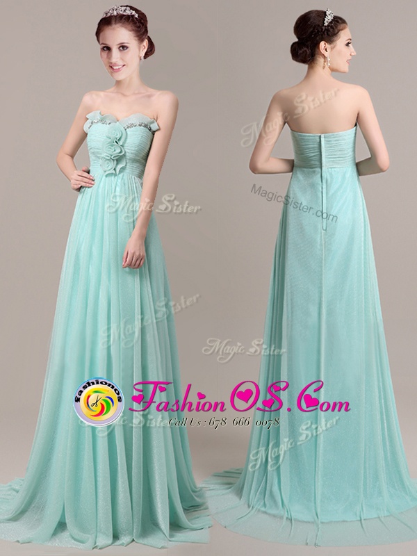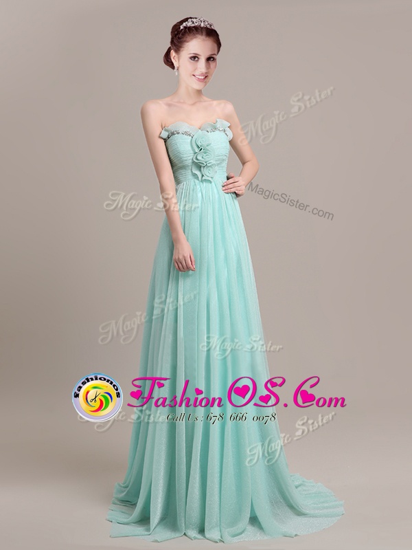 Glamorous Sleeveless Brush Train Zipper With Train Beading and Hand Made Flower Homecoming Dress Online