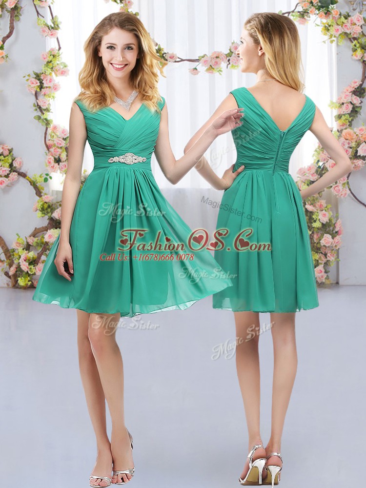 Glamorous Sleeveless Chiffon Mini Length Zipper Bridesmaid Dresses in Turquoise with Belt