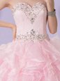 Glamorous Sleeveless Floor Length Beading and Ruffles Lace Up 15 Quinceanera Dress with Baby Pink