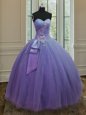 Home >  Quinceanera Dresses >  Perfect Quinceanera Dresses > Glamorous Sleeveless Tulle and Sequined Floor Length Lace Up 15th Birthday Dress in Lavender for with Beading and Ruching and Bowknot