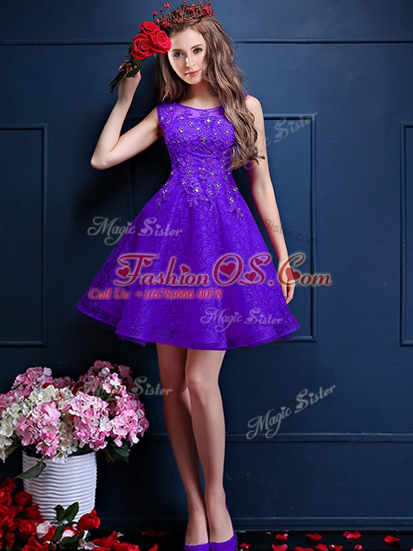 Home >  Special Occasion Dresses >  Dama Dresses 2018 > Glamorous Sleeveless Tulle Knee Length Lace Up Dama Dress in Purple with Beading and Lace