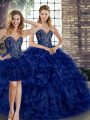 Glamorous Sweetheart Sleeveless Quince Ball Gowns Floor Length Beading and Ruffles Royal Blue Organza