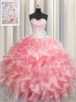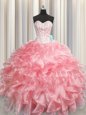 Glamorous Visible Boning Zipper Up Baby Pink Zipper Sweetheart Beading and Ruffles Quinceanera Dress Organza Sleeveless