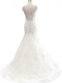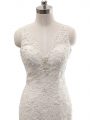Glamorous White Wedding Gowns V-neck Sleeveless Brush Train Clasp Handle