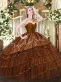 Glittering Brown Ball Gowns Embroidery and Ruffled Layers Sweet 16 Dresses Zipper Organza and Taffeta Sleeveless Floor Length