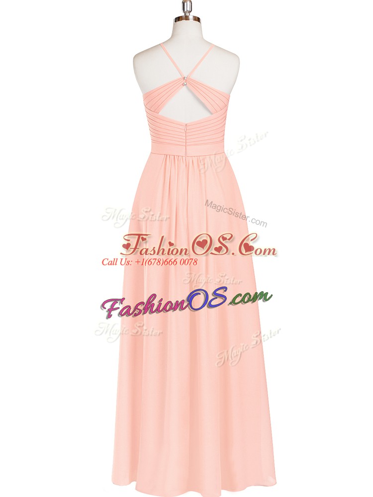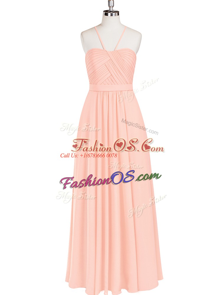 Glittering Floor Length Zipper Prom Dresses Pink for Prom and Party and Military Ball with Ruching