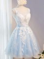 Home >  Prom Dresses >  Beautiful Prom Dresses > Glittering Knee Length A-line Sleeveless Baby Blue Dress for Prom Lace Up