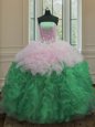 Glittering Multi-color Ball Gowns Organza Strapless Sleeveless Beading and Ruffles Floor Length Lace Up Sweet 16 Dress