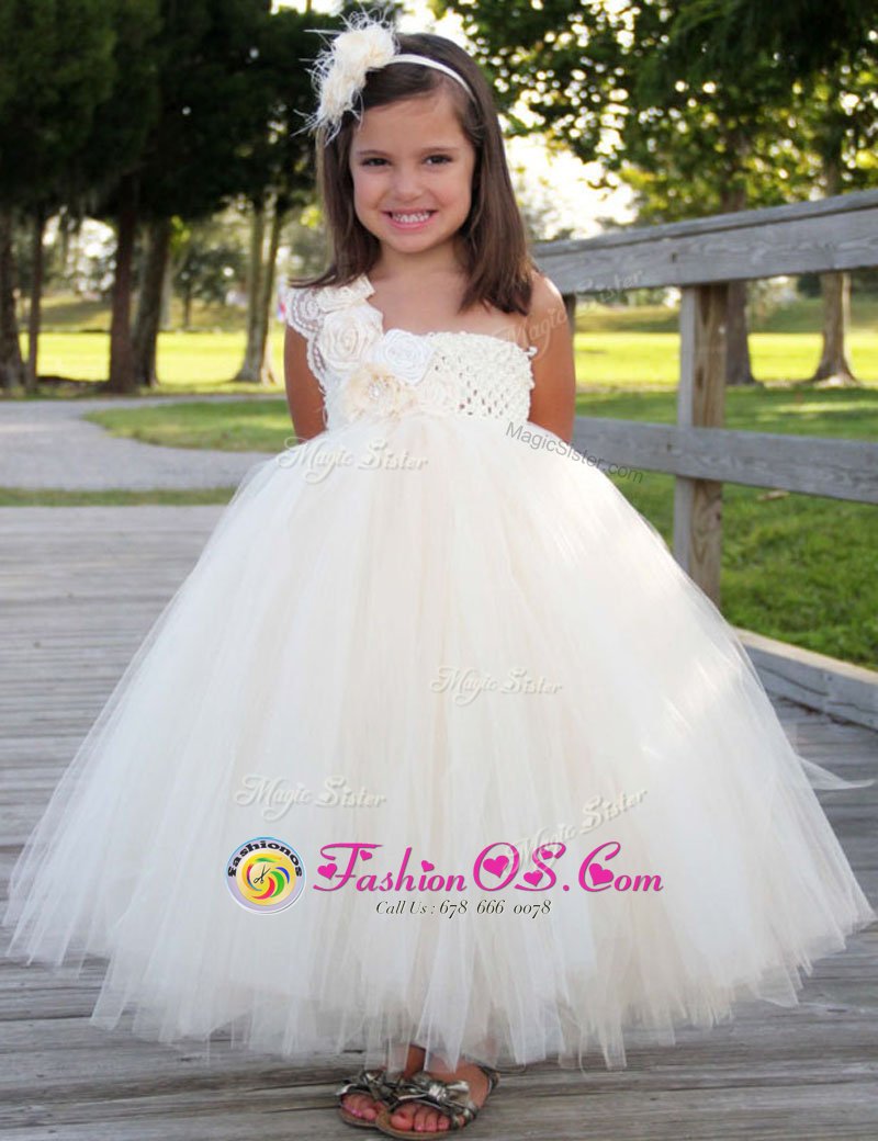 Home >  Special Occasion Dresses >  Cheap Flower Girl Dresses > Glittering One Shoulder White Sleeveless Tulle Zipper Toddler Flower Girl Dress for Party and Wedding Party