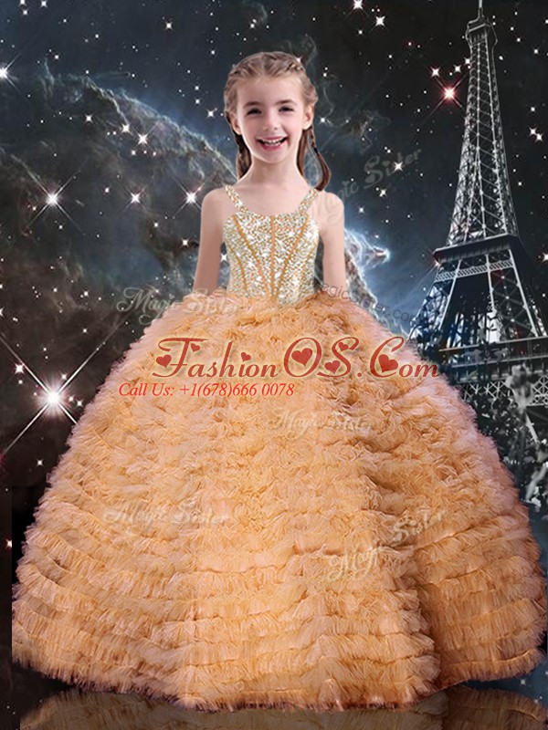 Home >  Special Occasion Dresses >  New Style Little Girl Pageant Dresses > Glittering Orange Red Lace Up Kids Formal Wear Beading and Ruffled Layers Sleeveless Floor Length