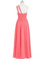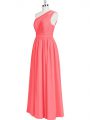 Glittering Red A-line One Shoulder Sleeveless Chiffon Floor Length Zipper Ruching Prom Party Dress