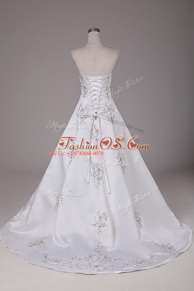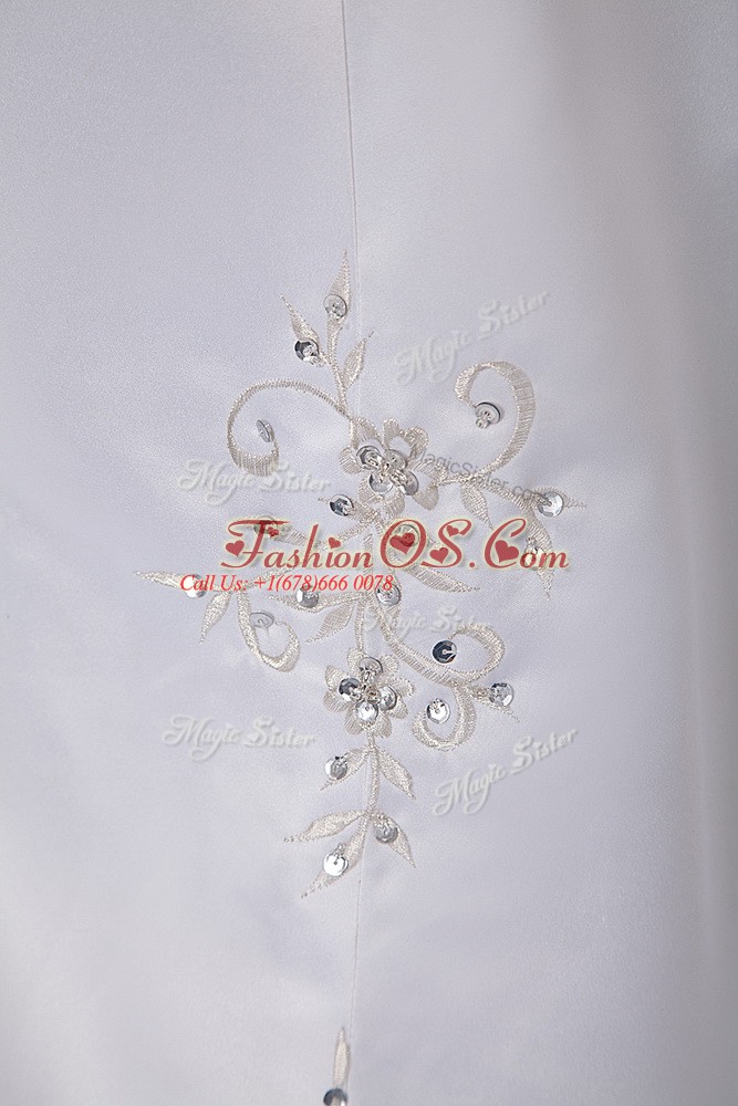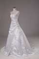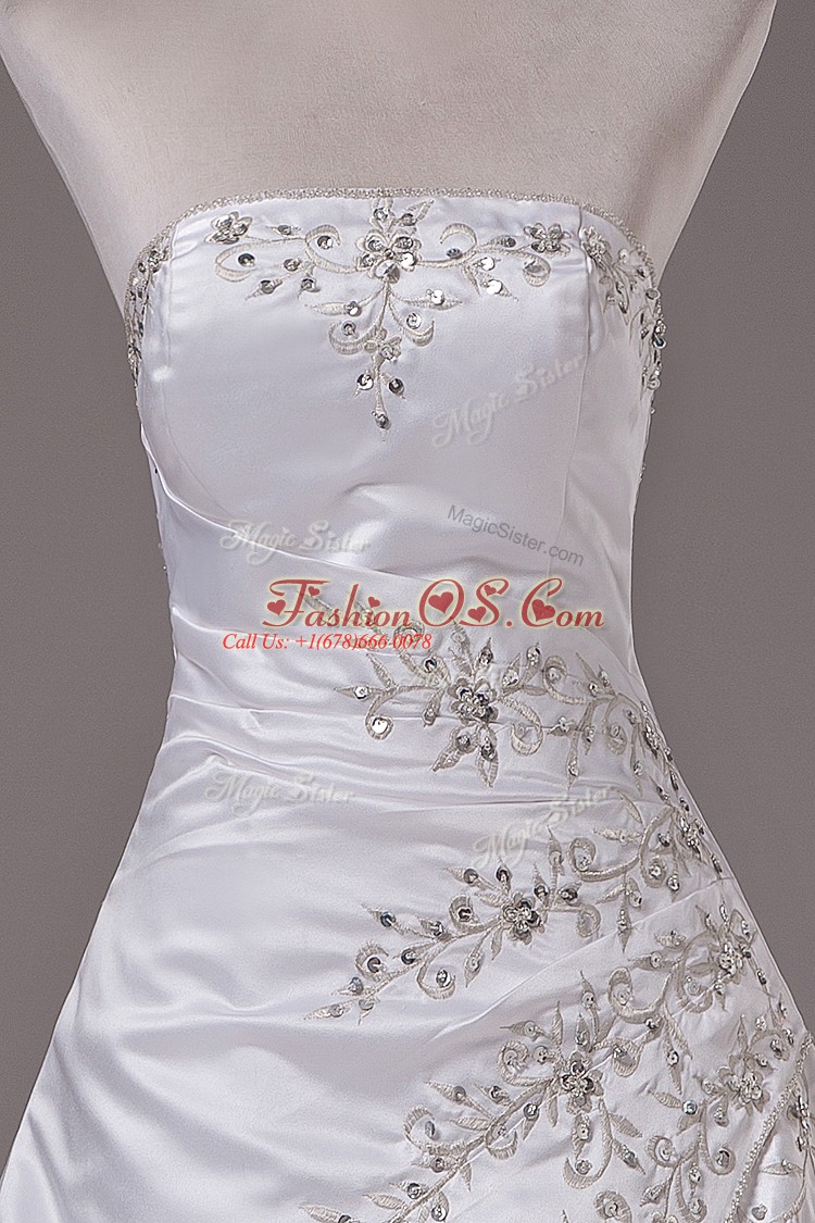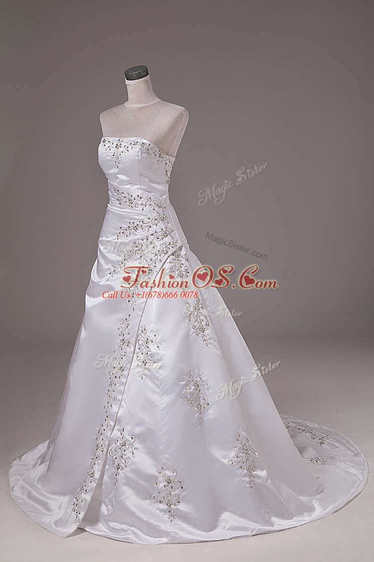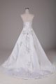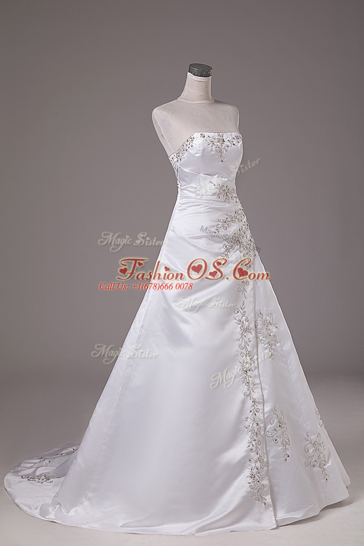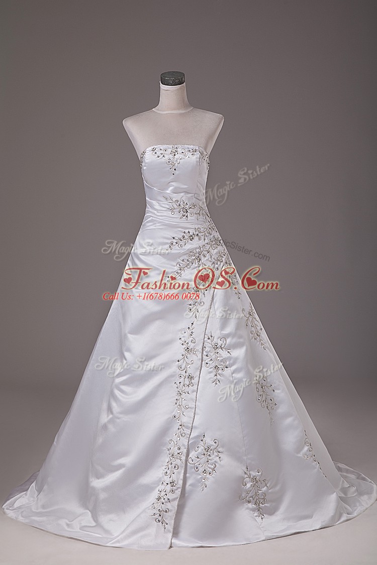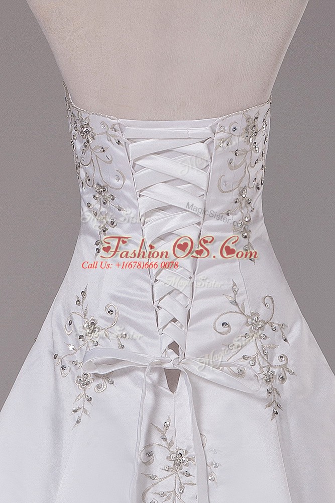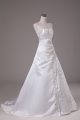 Glittering Satin Sleeveless Wedding Dresses Brush Train and Beading