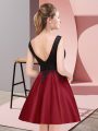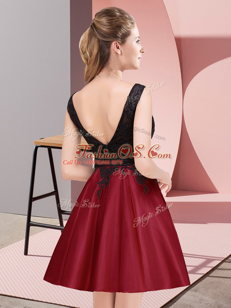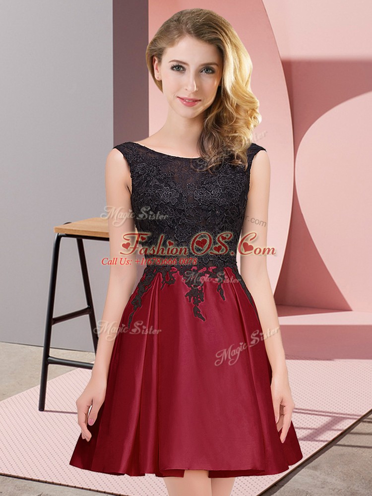 Glittering Scoop Sleeveless Dama Dress Mini Length Lace Wine Red Satin