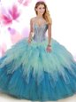 Home >  Quinceanera Dresses >  Fashionable Quinceanera Dresses > Glittering Scoop Sleeveless Sweet 16 Dress Floor Length Beading Navy Blue Tulle