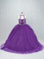 Glittering Sleeveless Beading Lace Up Sweet 16 Quinceanera Dress with Purple Brush Train