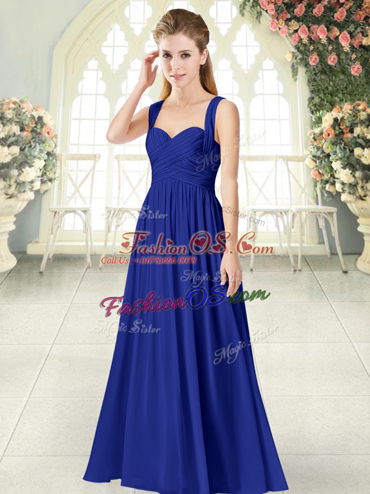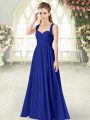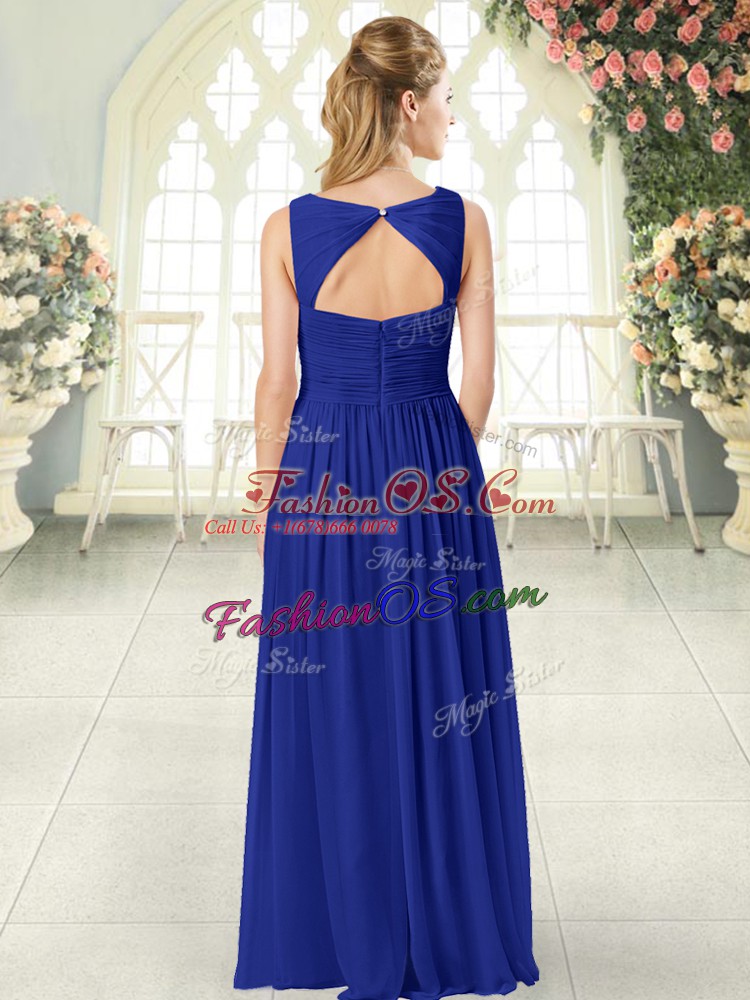 Glittering Sleeveless Chiffon Floor Length Zipper Prom Evening Gown in Royal Blue with Ruching