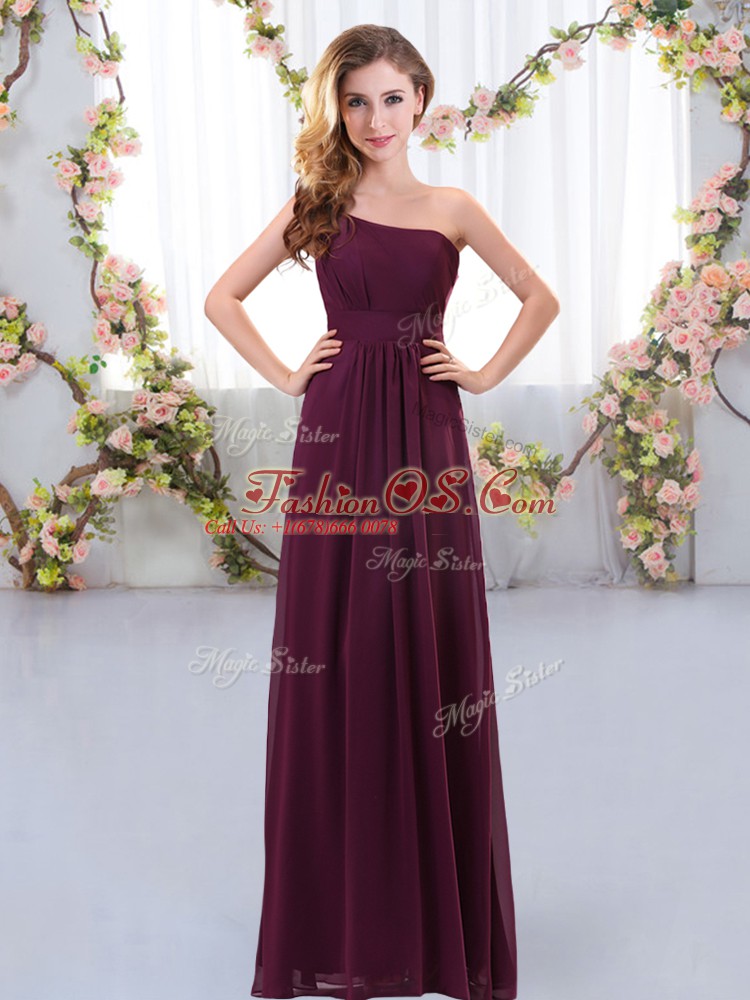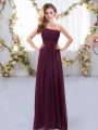Glittering Sleeveless Floor Length Ruching Zipper Bridesmaid Dresses with Burgundy