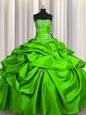 Glittering Strapless Sleeveless Taffeta Quinceanera Gown Beading and Pick Ups Lace Up