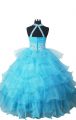 Home >  Special Occasion Dresses >  Little Girl Pageant Dresses > Glittering Turquoise Sleeveless Organza Zipper Kids Formal Wear for Quinceanera and Wedding Party