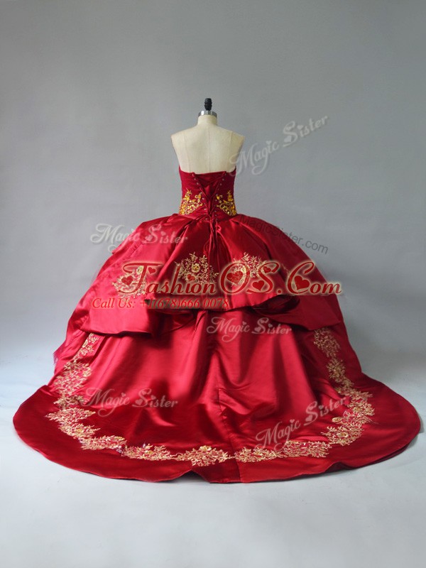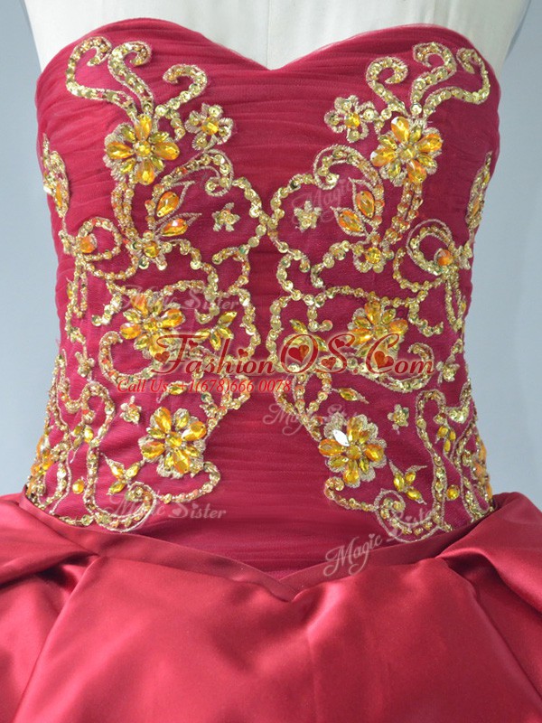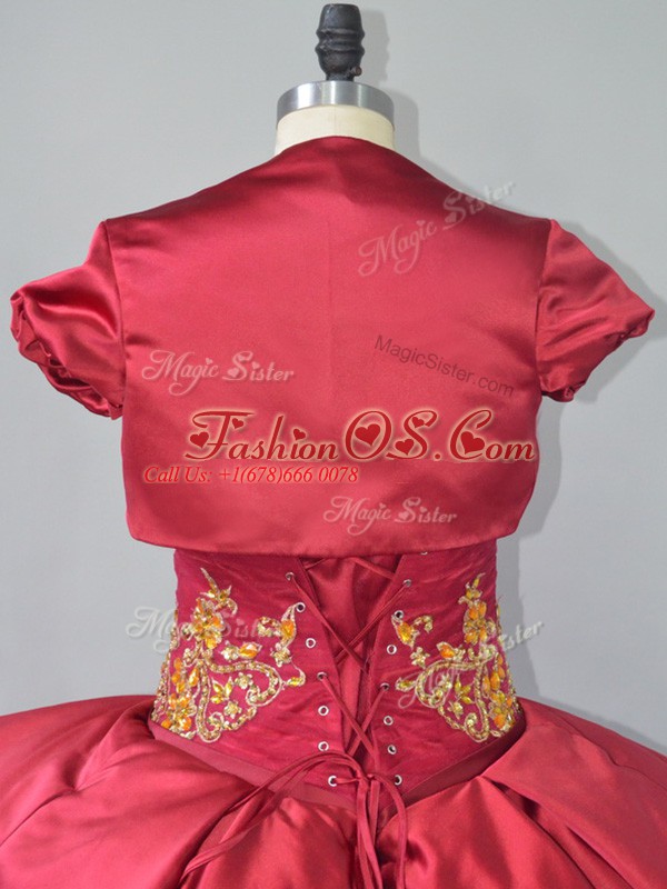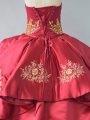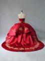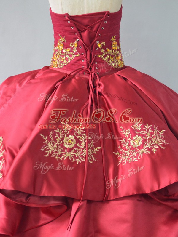 Glittering Wine Red Lace Up Quinceanera Gown Beading and Embroidery Sleeveless Court Train