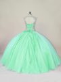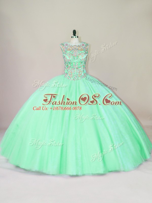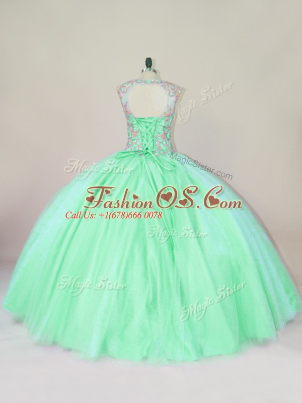 Glorious Apple Green Lace Up Sweet 16 Dresses Beading Sleeveless Floor Length