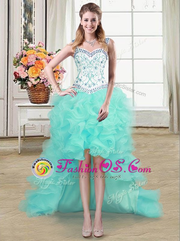 Home >  Quinceanera Dresses >  Detachable Quinceanera Skirts > Glorious Four Piece Straps Floor Length Ball Gowns Sleeveless Aqua Blue Vestidos de Quinceanera Lace Up