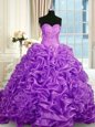 Glorious Fuchsia Sweetheart Neckline Beading and Pick Ups Ball Gown Prom Dress Sleeveless Lace Up
