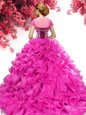 Glorious Hot Pink Organza Lace Up Sweet 16 Quinceanera Dress Sleeveless Sweep Train Beading and Ruffles