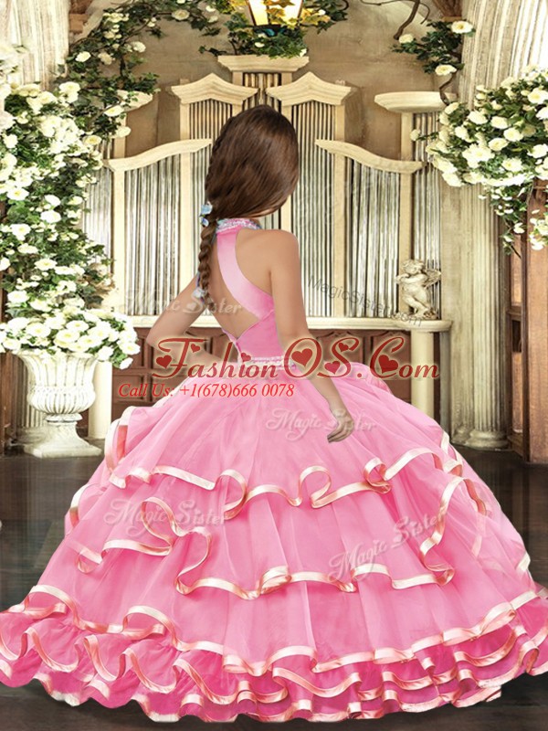 Glorious Lavender Ball Gowns Beading and Ruffled Layers Little Girl Pageant Gowns Backless Organza Sleeveless Floor Length