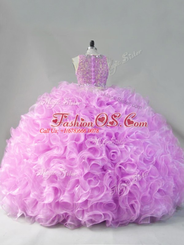 Glorious Lilac Sleeveless Beading and Ruffles Floor Length Quinceanera Dress