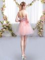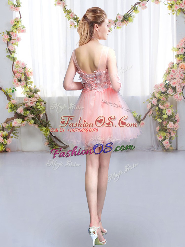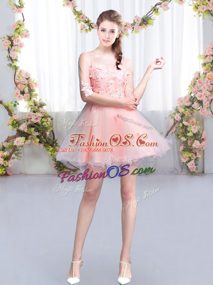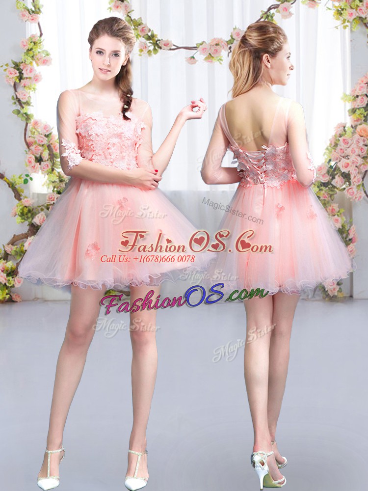 Glorious Mini Length Pink Bridesmaid Dress Scoop Half Sleeves Lace Up