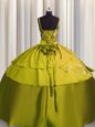 Home >  Quinceanera Dresses >  New Arrival Quinceanera Dresses > Glorious Olive Green Lace Up 15th Birthday Dress Beading and Embroidery Sleeveless Floor Length