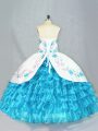 Home >  Quinceanera Dresses >  Clearance Quinceanera Dresses > Glorious Organza Sweetheart Sleeveless Lace Up Embroidery and Ruffled Layers Ball Gown Prom Dress in Baby Blue