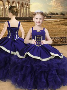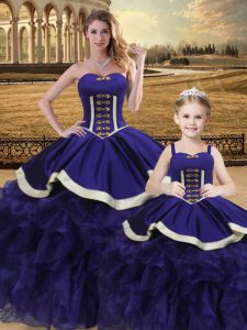 Glorious Satin and Organza Sweetheart Sleeveless Lace Up Beading and Ruffles Quince Ball Gowns in Purple