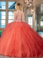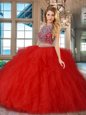Glorious Scoop Beading and Ruffles Quinceanera Gowns Red Backless Sleeveless Floor Length