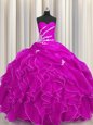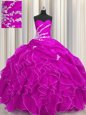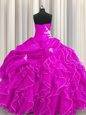 Glorious Sequins Fuchsia Quinceanera Dresses Military Ball and Sweet 16 and Quinceanera and For with Beading and Embroidery and Ruffles Sweetheart Sleeveless Lace Up