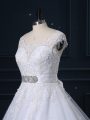 Glorious Sleeveless Court Train Zipper Beading and Lace Bridal Gown