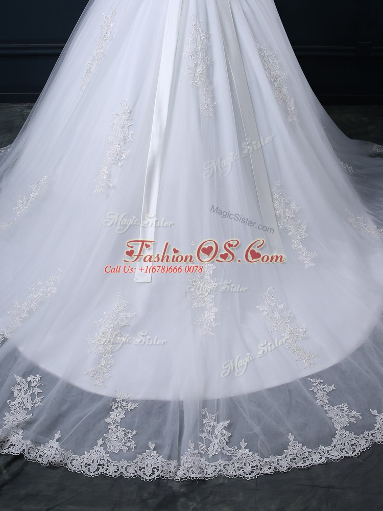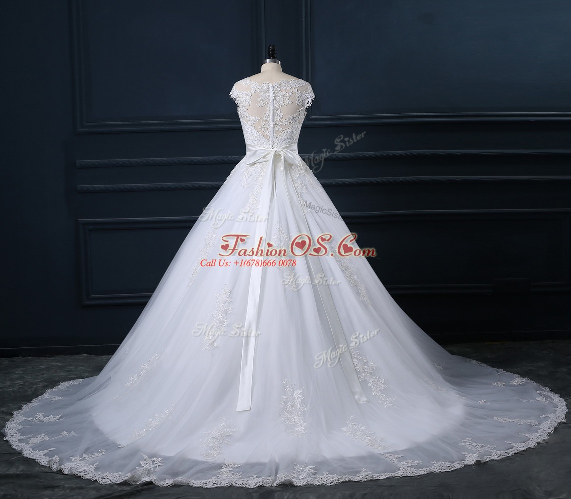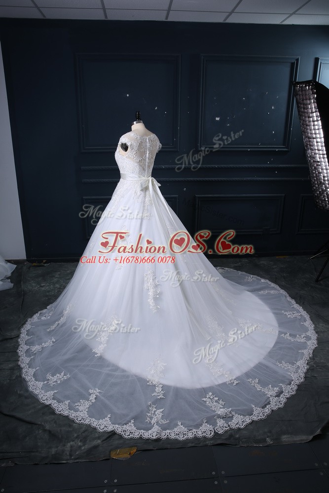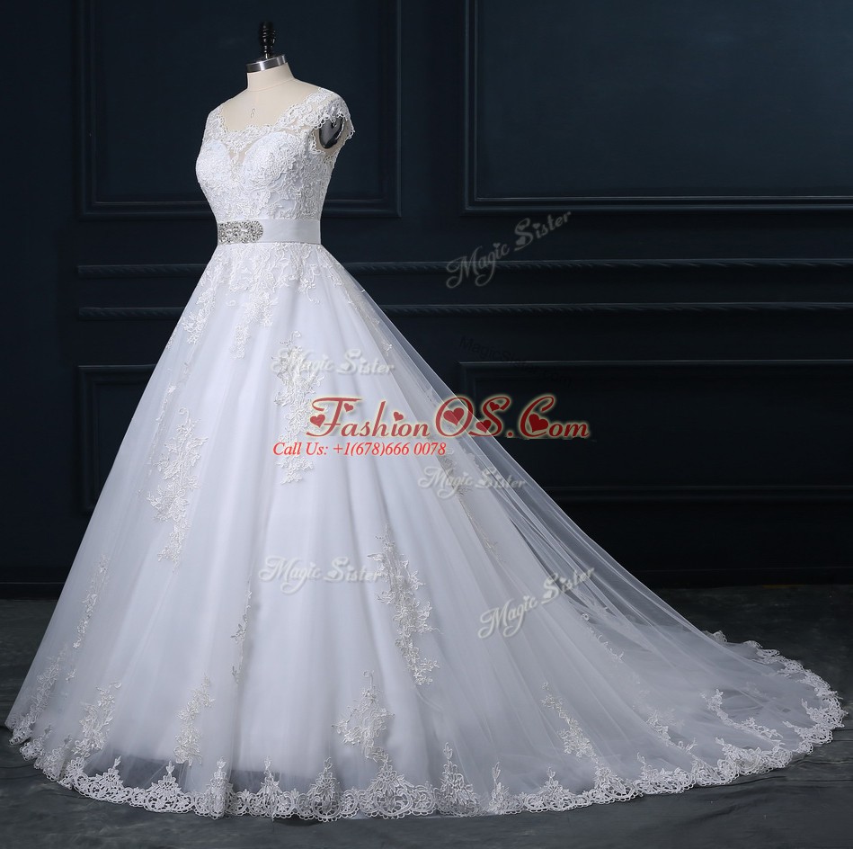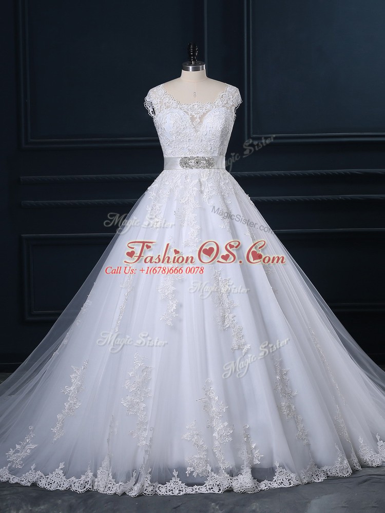Home >  Wedding Dresses >  Wedding Dresses 2018 > Glorious Sleeveless Court Train Zipper Beading and Lace Bridal Gown