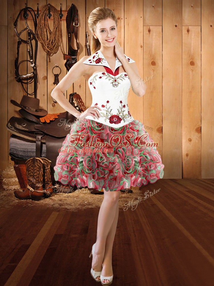 Glorious Sleeveless Embroidery Lace Up Quinceanera Dress with Multi-color Sweep Train