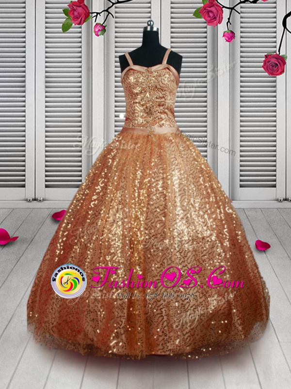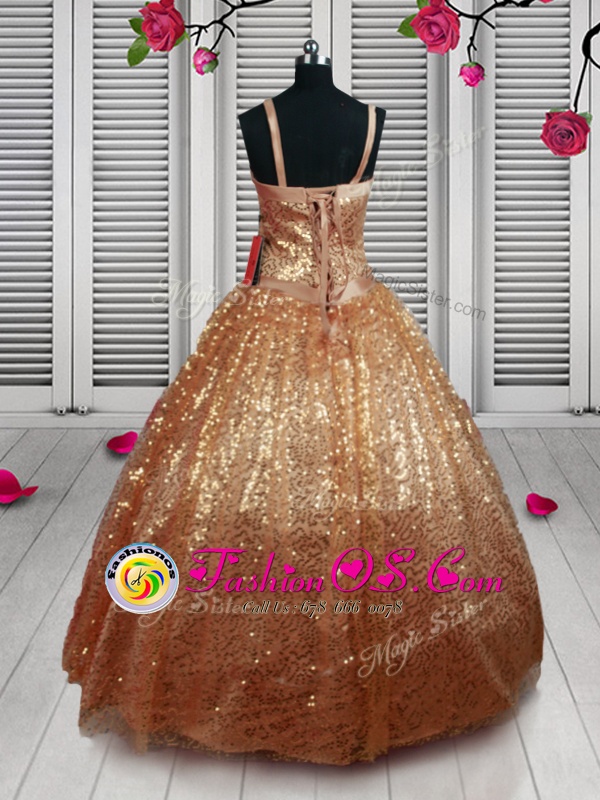 Home >  Special Occasion Dresses >  Mini Quinceanera Dresses > Glorious Sleeveless Floor Length Beading and Sequins Lace Up Little Girls Pageant Dress with Rust Red