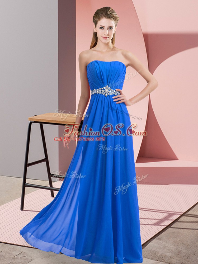 Glorious Sleeveless Floor Length Beading Lace Up Party Dress Wholesale with Blue