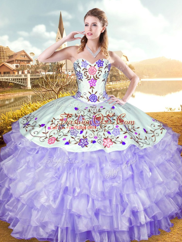 Glorious Sweetheart Sleeveless Organza and Taffeta Sweet 16 Quinceanera Dress Embroidery and Ruffled Layers Lace Up