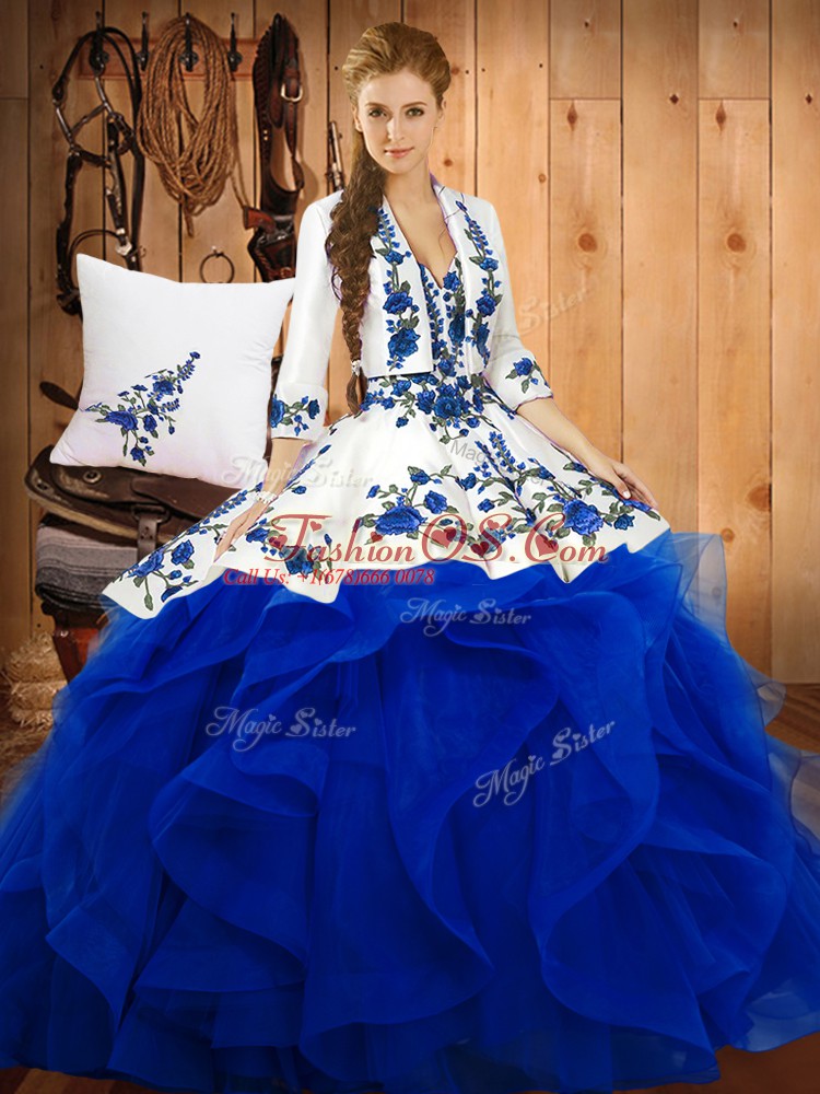 Glorious Sweetheart Sleeveless Quinceanera Dress Floor Length Embroidery Blue Satin and Organza